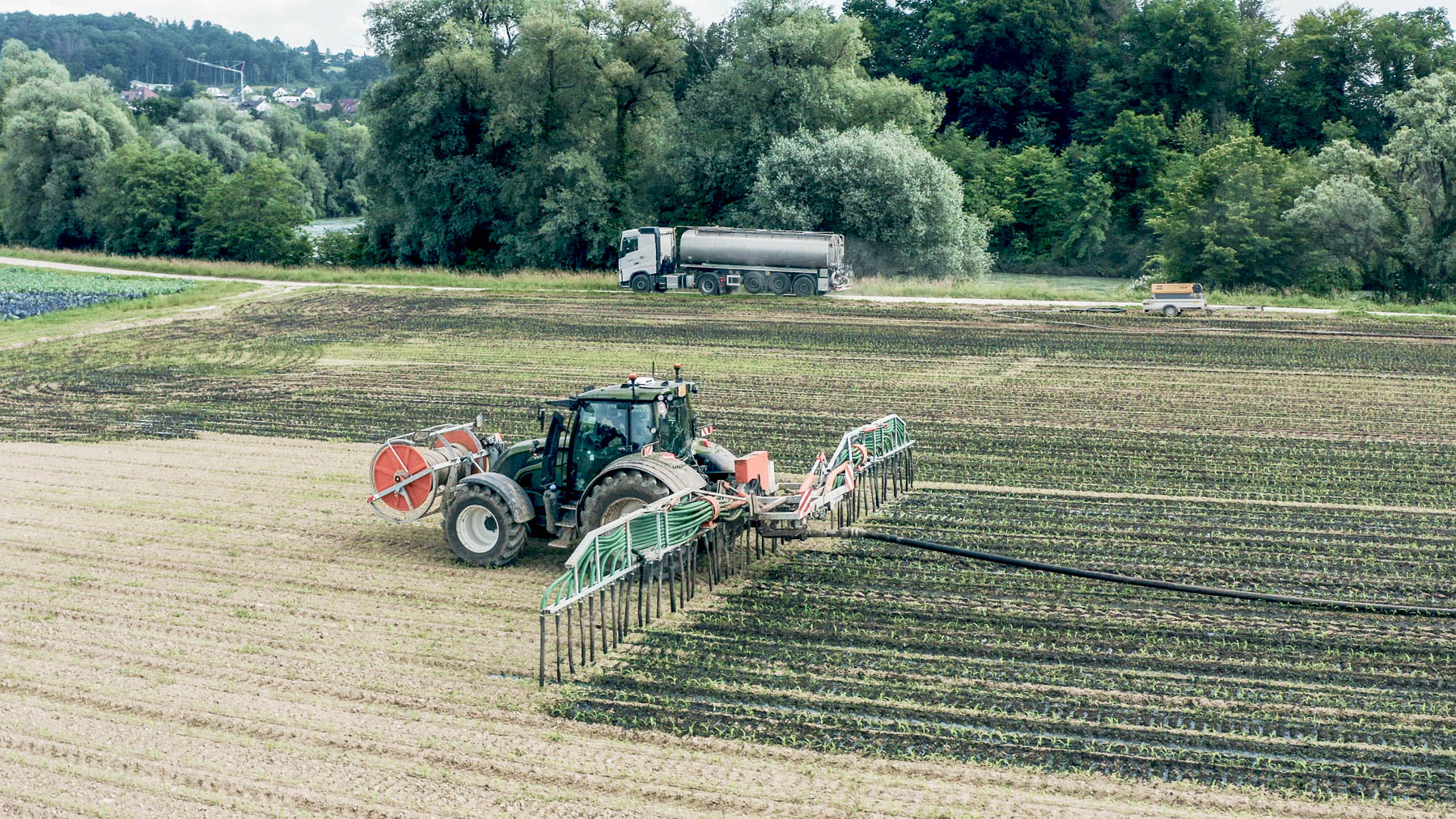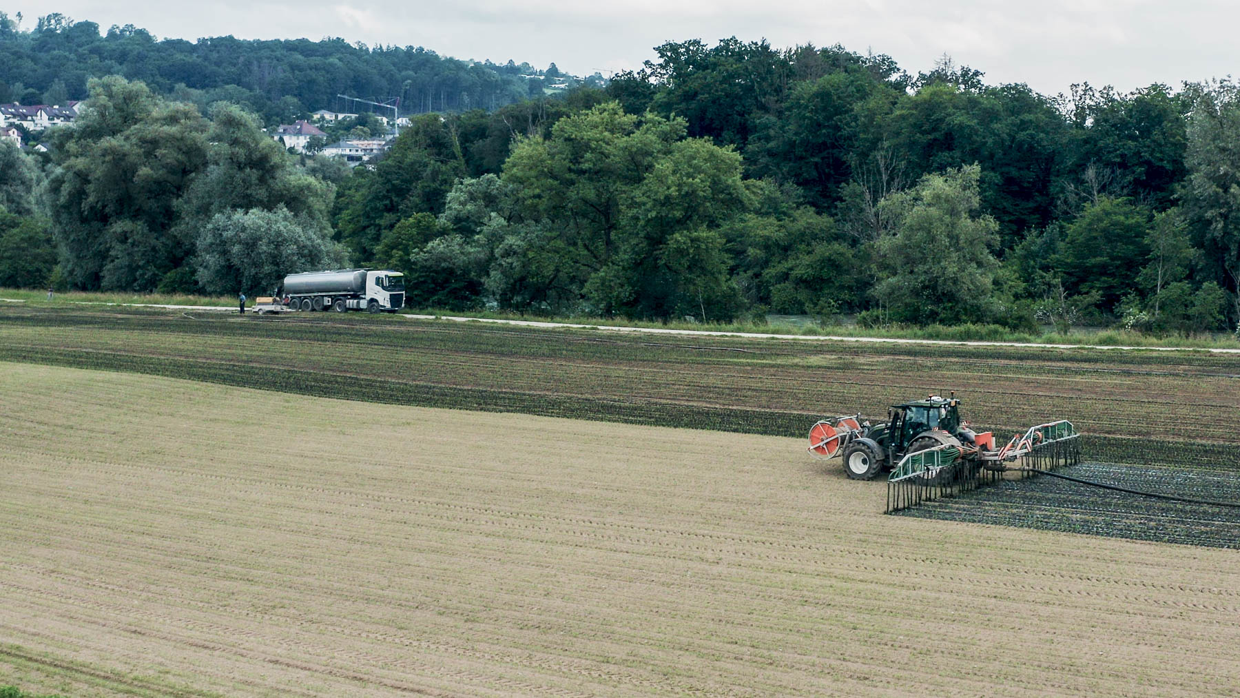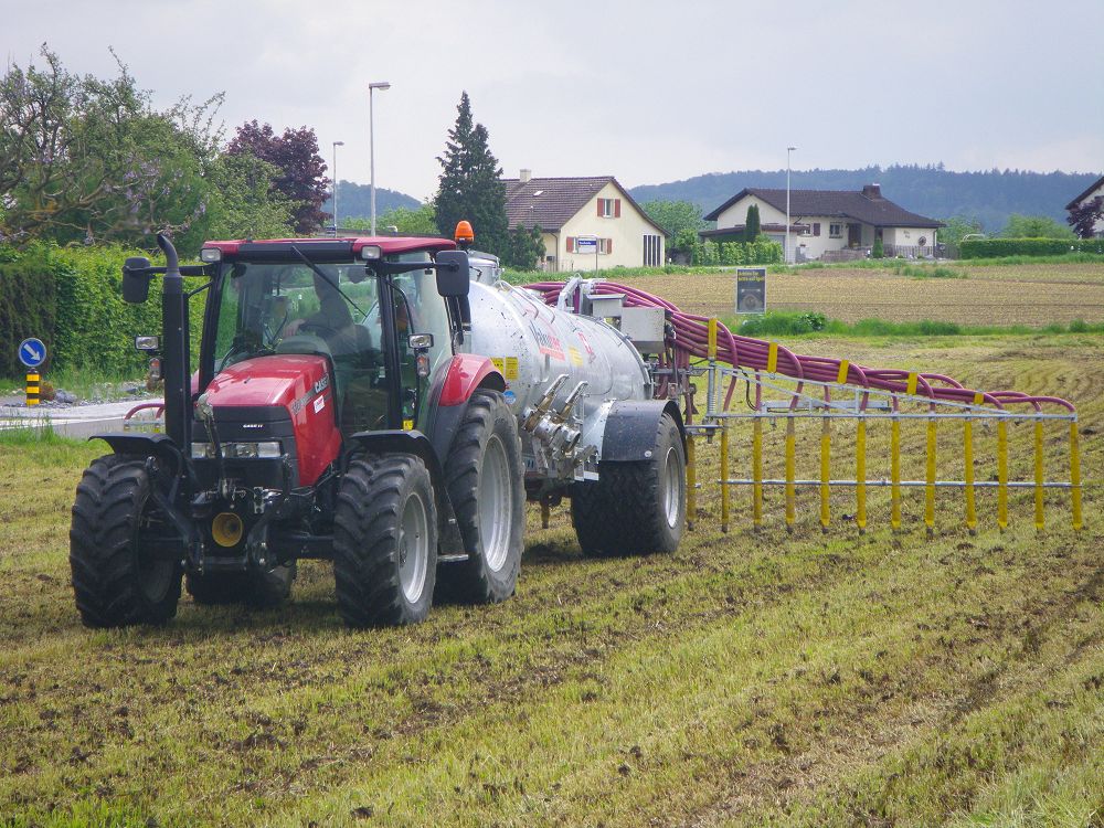 Wir düngen ihre Ackerkulturen und Grünland mit flüssigen Hof- oder Recyclingdünger zum gewünschten Zeitpunkt. Wir verschlauchen sämtliche Gülle direkt ab Loch oder ab dem Feldrand und befahren die Felder nur mit dem leichten Verteiltraktor.