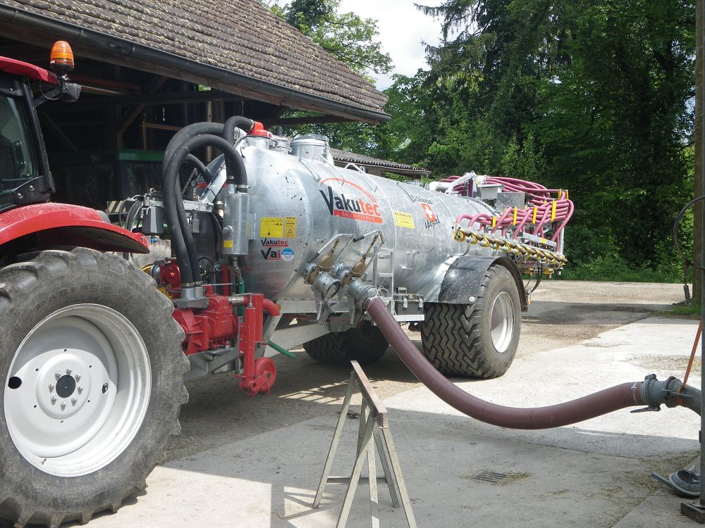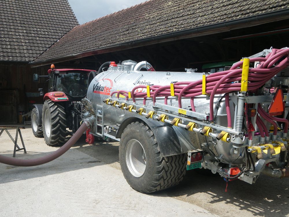Eine Maschine weniger die sie unterhalten müssen. Mit unserem 8m³ Vakuumfass mit Turbofüller bringen sie ihre Gülle schnell und sicher aus. Das Fass ist mit einem 9m Schleppschlauchverteiler ausgerüstet. Mit der Komfortbedienung öffnen sie den Verteiler mit einem Knopfdruck. Ebenso einfach schliessen sie das Gestänge wieder. Die Anzahl ausgebrachter Fässer wird elektronisch erfasst.