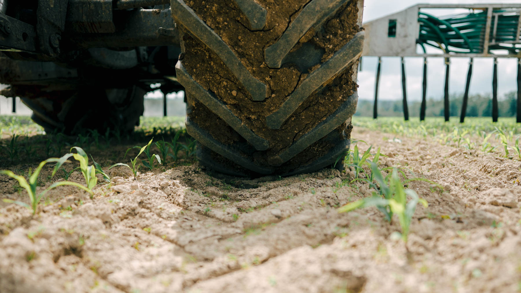 Die grosszügige Bereifung in der Dimension 850/50 R30.5 sorgt für einen geringen Bodendruck.