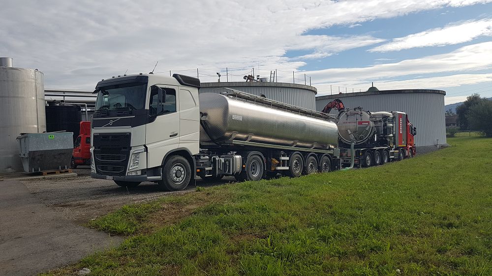 Mit unserem modernen Fuhrpark transportieren wir hauptsächlich flüssige Produkte in oder innerhalb der Landwirtschaft, Nebenprodukte aus der Lebensmittelindustrie sowie Klär- und Bohrschlamm. Zudem verfügen wir über einen Kippauflieger und transportieren damit Schüttgüter wie festes Gärgut, Kompost oder Aushub und Baustoffe.